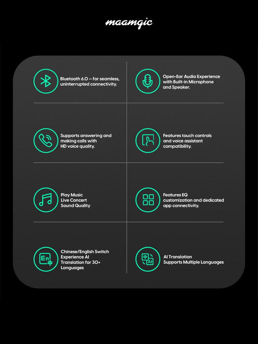 - Super-Long Battery Life: Enjoy up to 10 hours of continuous music/translation use or 8 hours of call time on a single charge. A 15-minute quick charge provides 2 hours of use.